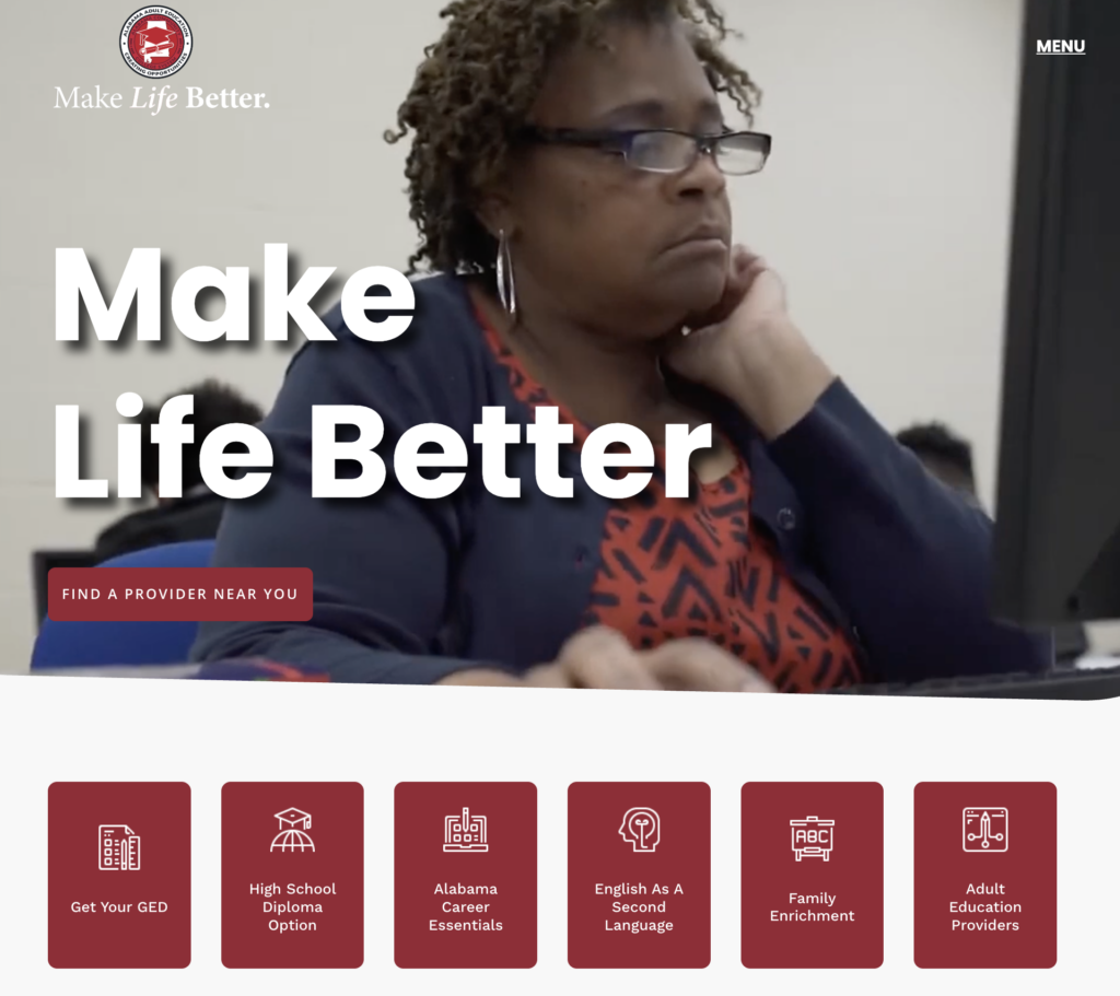 I built the Alabama Adult Education website using WordPress and Divi to clearly present available programs and resources. The site includes sections for GED prep, ESL, job training, and provider locations. I focused on a clean layout and easy navigation to help users quickly find the information and support they need.